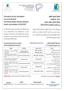 لائحة المترشحين المقبولين لاجتياز الاختبار الشفوي لمباراة توظيف أستاذ محاضر : تخصص Economie et Gestion septembre 5, 2024 7:16 pm Read More » Avis de demande de transfert 2024-2025 septembre 2, 2024 1:30 pm Read More » Avis de pré-inscription en doctorat 2024-2025 août 30, 2024 10:35 am Read More » اعتماد نظام المداومة août 3, 2024 4:13 pm Read More » « Previous Next »