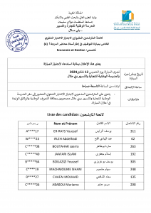 لائحة المترشحين المقبولين لاجتياز الاختبار الشفوي لمباراة توظيف أستاذ محاضر : تخصص Economie et Gestion septembre 5, 2024 7:16 pm Read More »